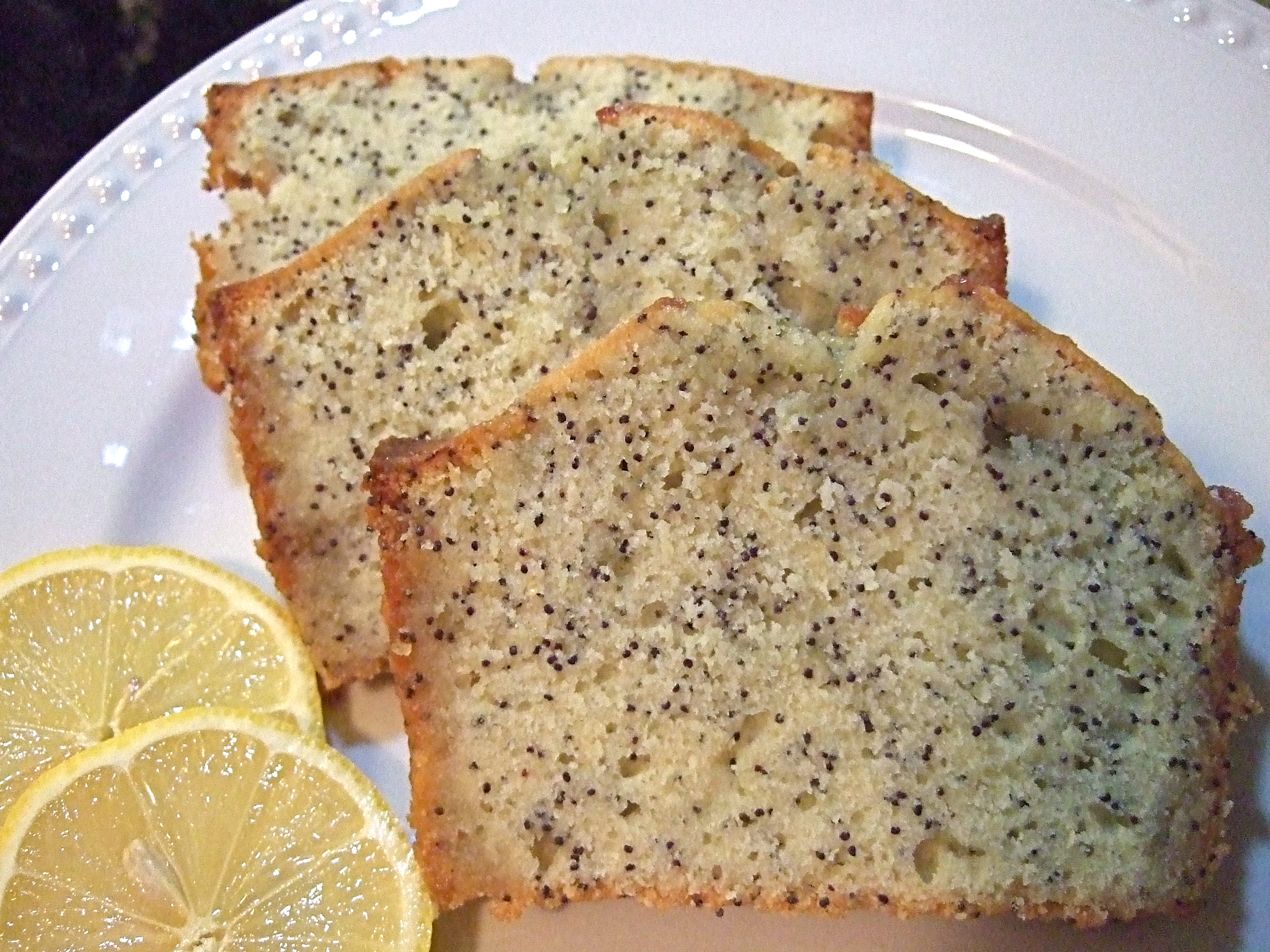 As you may recall, last week I had a lot of reservations about my muffins, and needed some reassurance.  In addition to feedback from coworkers, I also sought out one of my baking mentors, K.  Even though she’s been trying to avoid sweets, she was willing to take one for the team so that I could get the opinion of someone whose oven I trust completely.  To thank her for this, I offered to let her pick my next recipe.  Almost instantly, the words ‘lemon poppy bread’ came tumbling out of her mouth.  Okay, works for me!