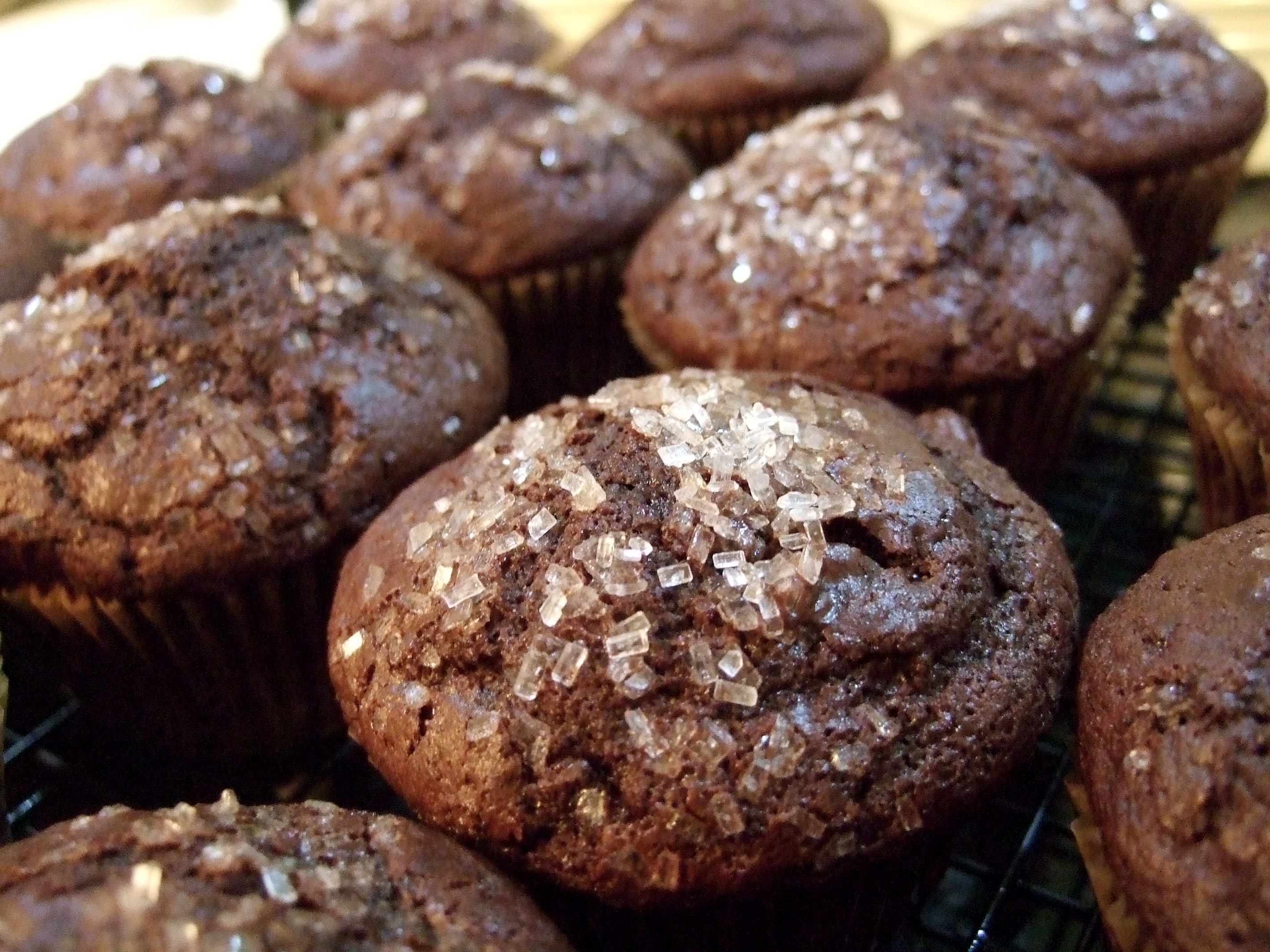 When they came out, I was devastated.  They were darker than I wanted, probably due to using metal pans with muffin papers, rather than the silicone pan (without papers) that I had used the first time.  The walnuts were overwhelming, making the whole thing taste like tree bark.  I thought they were awful.