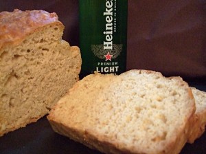 Mrslovey remembered that her mom used to make beer bread from scratch.  I’ve never done it before, but how hard can it be?  After digging out the recipe card and looking it over, I’m amazed at how simple it is.  Really, really simple.  I know that lots of people swear by the beer bread mixes that you can buy at home food parties, but this recipe knocks the socks off of those.  It’s a beautiful golden brown color, fresh, tangy, and lacks the processed flavor of the boxed mixes.  And the best part?  You pay up to ten dollars (not including the beer you still have to add!) for the mixes.  Mrsloveymom’s recipe costs less than two dollars to make, beer-inclusive.  Who can argue with that?? Read the rest of this entry ?