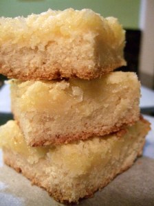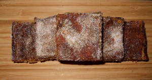 By the time we got home (from the restaurant supply store, woohoo!!), I had less than two hours to figure out what to make before I’d be leaving the house again. Snickerdoodle bars! Seriously, they are so easy it’s almost embarrassing. So I whipped up a batch, let them cool briefly before cutting, and then ran out the door. The Saturday tasters were delighted to be remembered, and all enjoyed the bars. They actually taste best when you let them sit for a day or two, so the flavors can really meld together, but they rarely last long enough for people to discover that. Read the rest of this entry ?